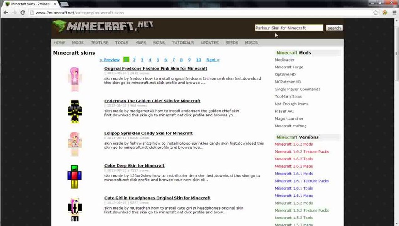 Mods, maps, skins, seeds, texture packs.